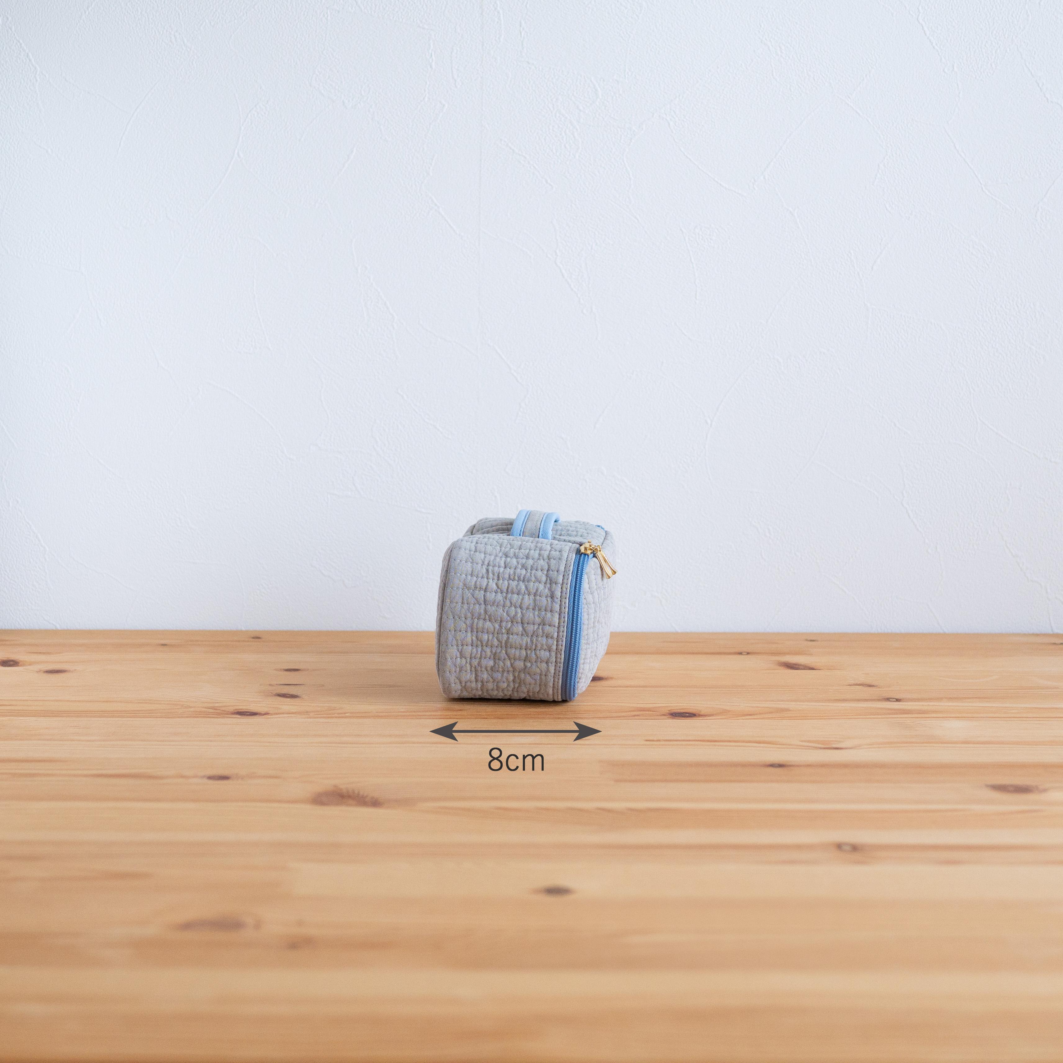 ヌビキルトのミニバニティポーチ(ライトグレー×くすみブルー)