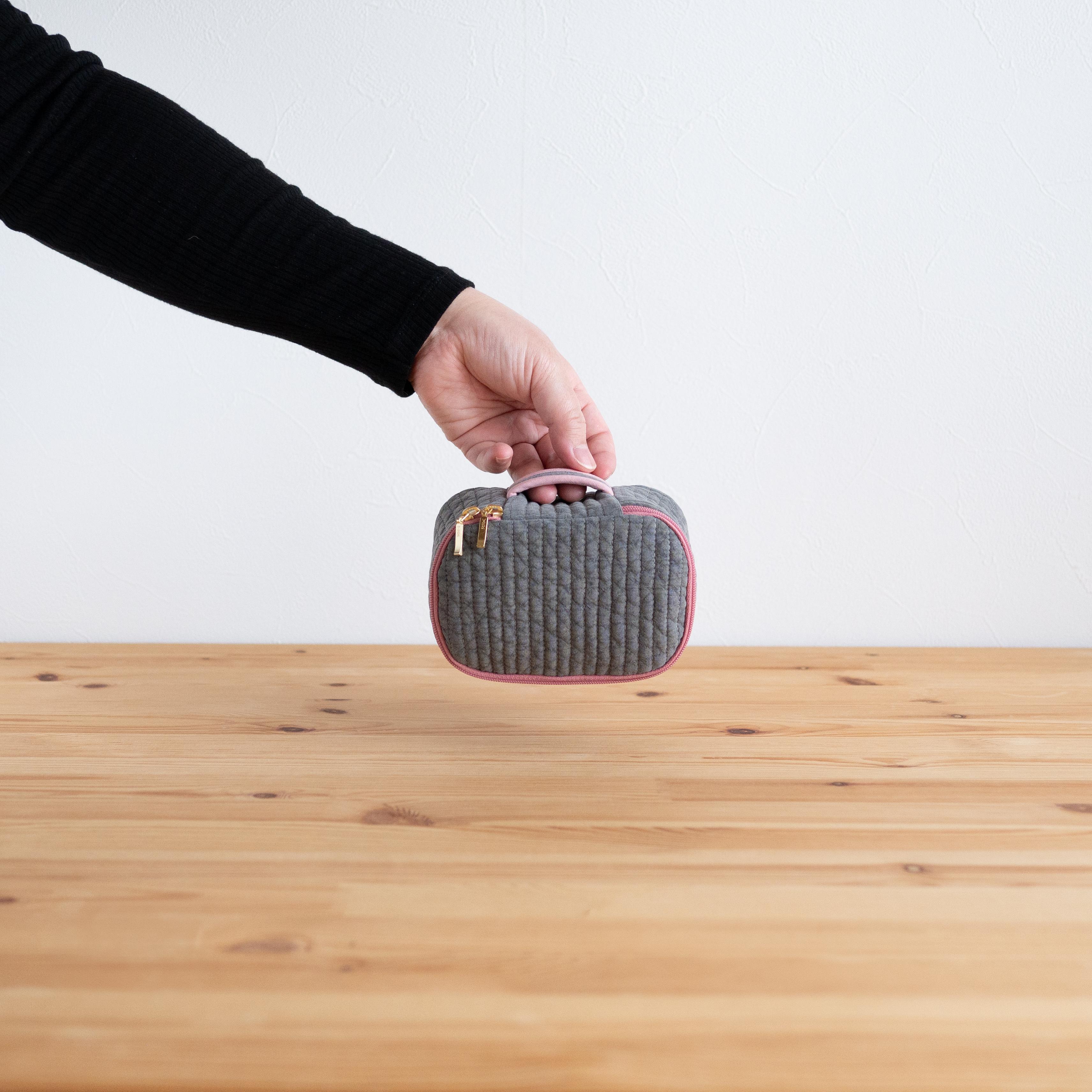 ヌビキルトのトラベルバニティポーチ(ダークグレー×くすみピンク)