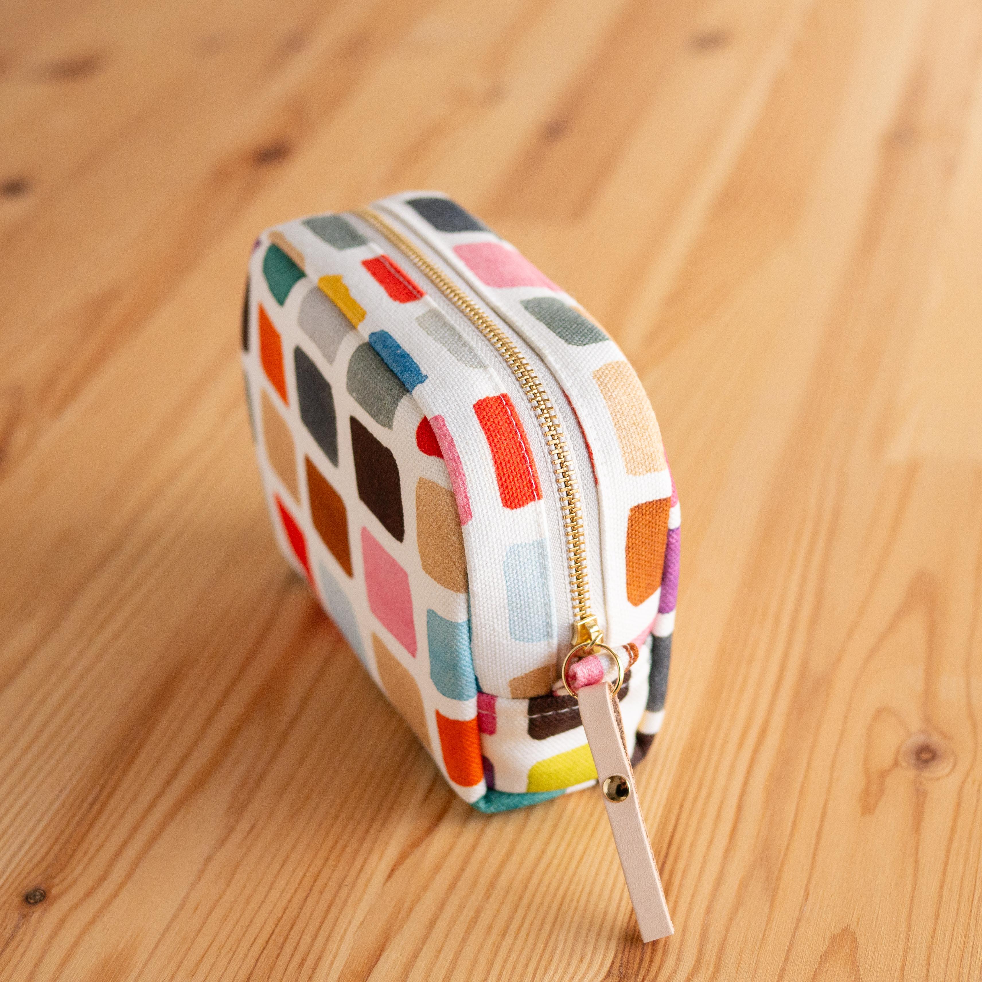 ヌビキルトのミニバニティポーチ(ライトグレー×くすみブルー)